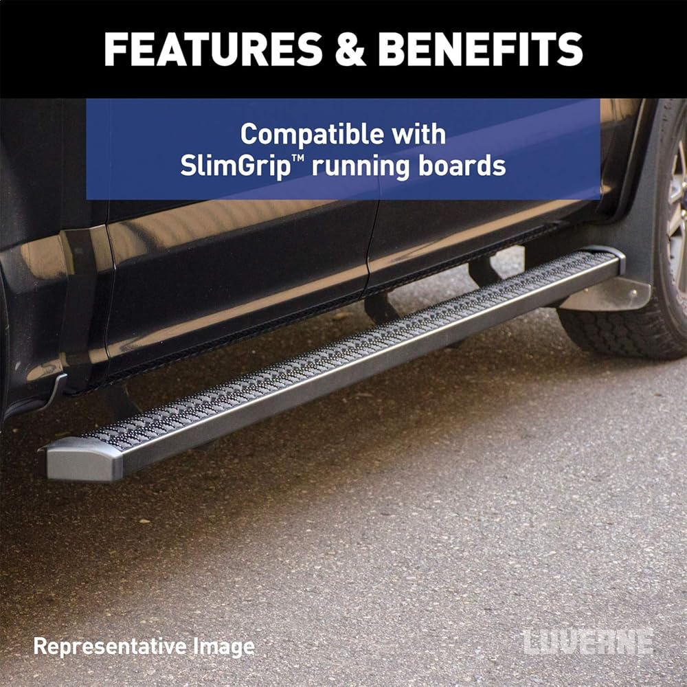 Compatible w/VersaTrac-Equipped Running Boards/Side Steps. No-Drill Vehicle Specific For Custom Fit. Heavy-duty Steel Construction. Durable Powder Coat Finish. Co-Cured In Liquid Bonderite Coating. Superior Rust Resistance.
