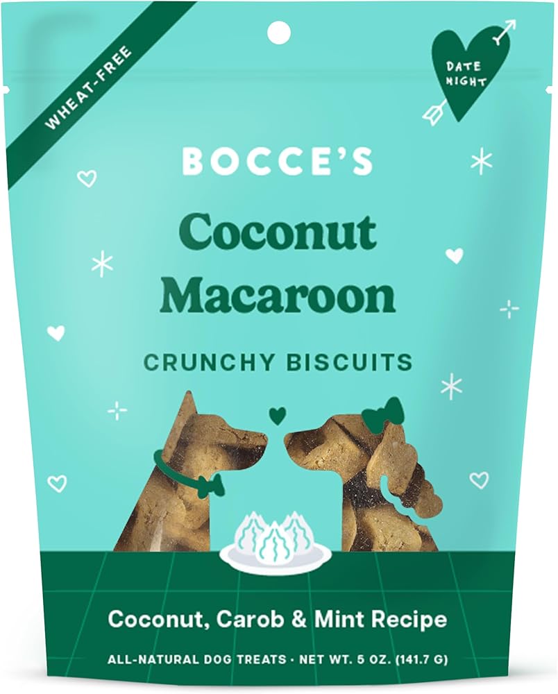مخبز بوتشي بجوز الهند معكرون للكلاب، حلوى يومية خالية من القمح للكلاب، مصنوعة من مكونات حقيقية، مخبوزة في الولايات المتحدة الأمريكية، بسكويت مقرمش من جوز الهند والخروب والنعناع الطبيعي بالكامل، 5 أونصة