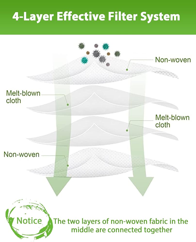 أداء ترشيح بنسبة تزيد عن 99.9% مصنوع من 4 طبقات من القماش الدقيق عالي القوة، والذي يتضمن طبقة فلتر من الألياف المنفوخة فائقة النعومة + طبقتين من الأقمشة غير المنسوجة. يمكن جمع أكثر من 99.9% من الأوساخ والشعر.