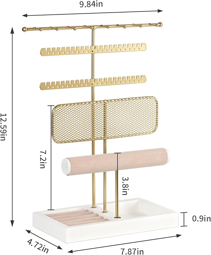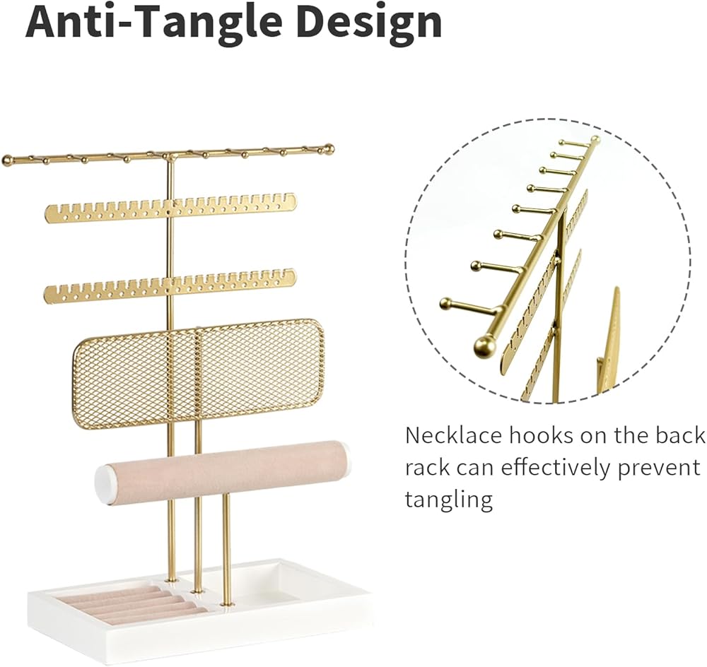 • Anti-Tangling Design: designed to place necklaces on the back of the jewelry rack, it can effectively avoid necklaces and earrings from getting tangled together.