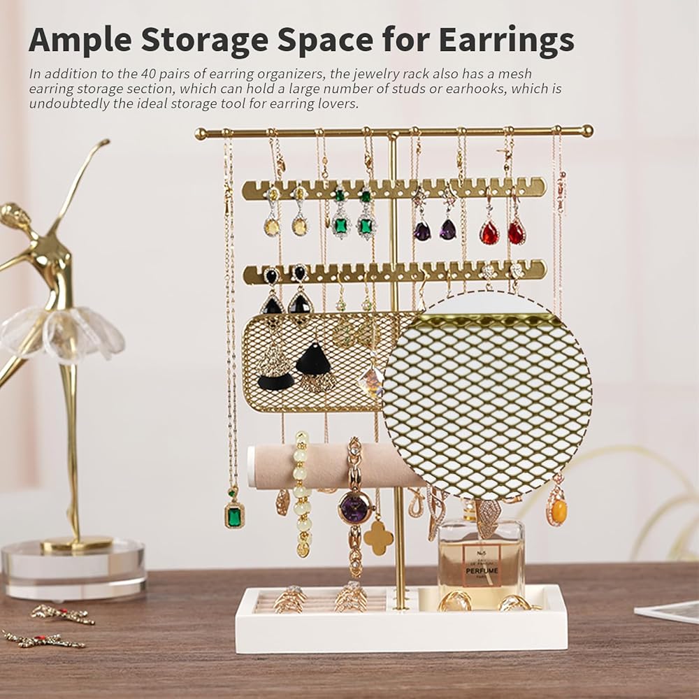 • All-Around Storage: this jewelry holder organizer can hold 40 pairs of earrings or studs, 8 necklaces, 1 bracelet, string or watch holder and 1 mesh jewelry holder, the base can hold rings, lipsticks, perfume and hair clips, etc.