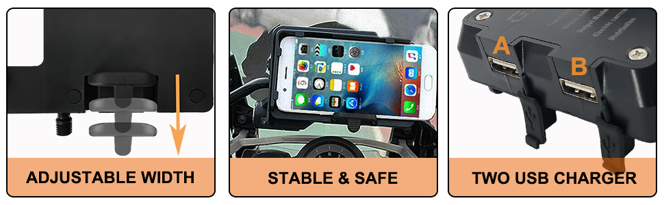 ثابت وآمن - مع تصميم المشبك الثلاثي، يتم تثبيت الهاتف بإحكام في حامل هاتف الدراجة النارية، وهو ثابت وصلب. لا داعي للقلق أبدًا بشأن تطاير الهاتف.