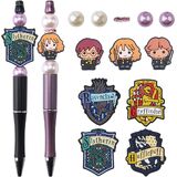2 Pieces Beadable Pens Kit Cartoon Silicone Focal Beads for Pens Cute DIY Bead Pens Making Kit Beaded Black Ink Ballpoint Pen for Office School Supplies
