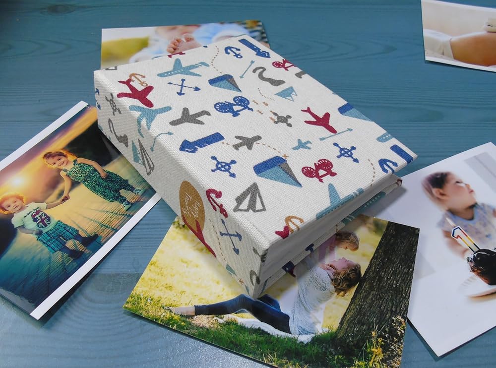 【مصمم للأطفال】غطاء قماشي بنمط طائرة هوائية لطيف للغاية، وهو خيار رائع لتسجيل عملية نمو الأطفال. الإطار الصلب يجعل ألبوم الصور متينًا وقويًا ليدوم لسنوات