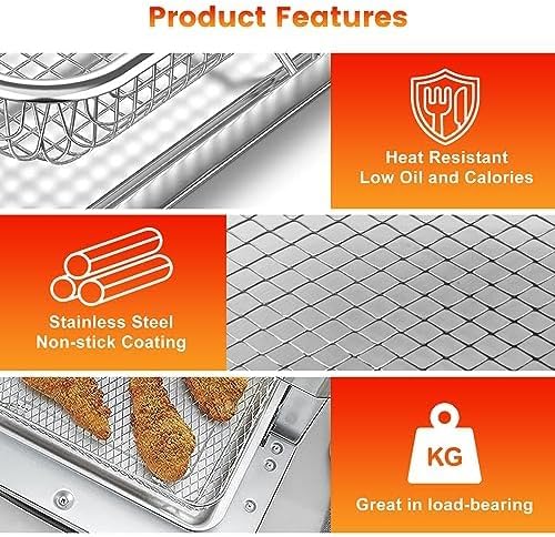 ->Made of premium stainless steel, the air fryer basket is high-temperature resistant, has no deformation, and is durable.