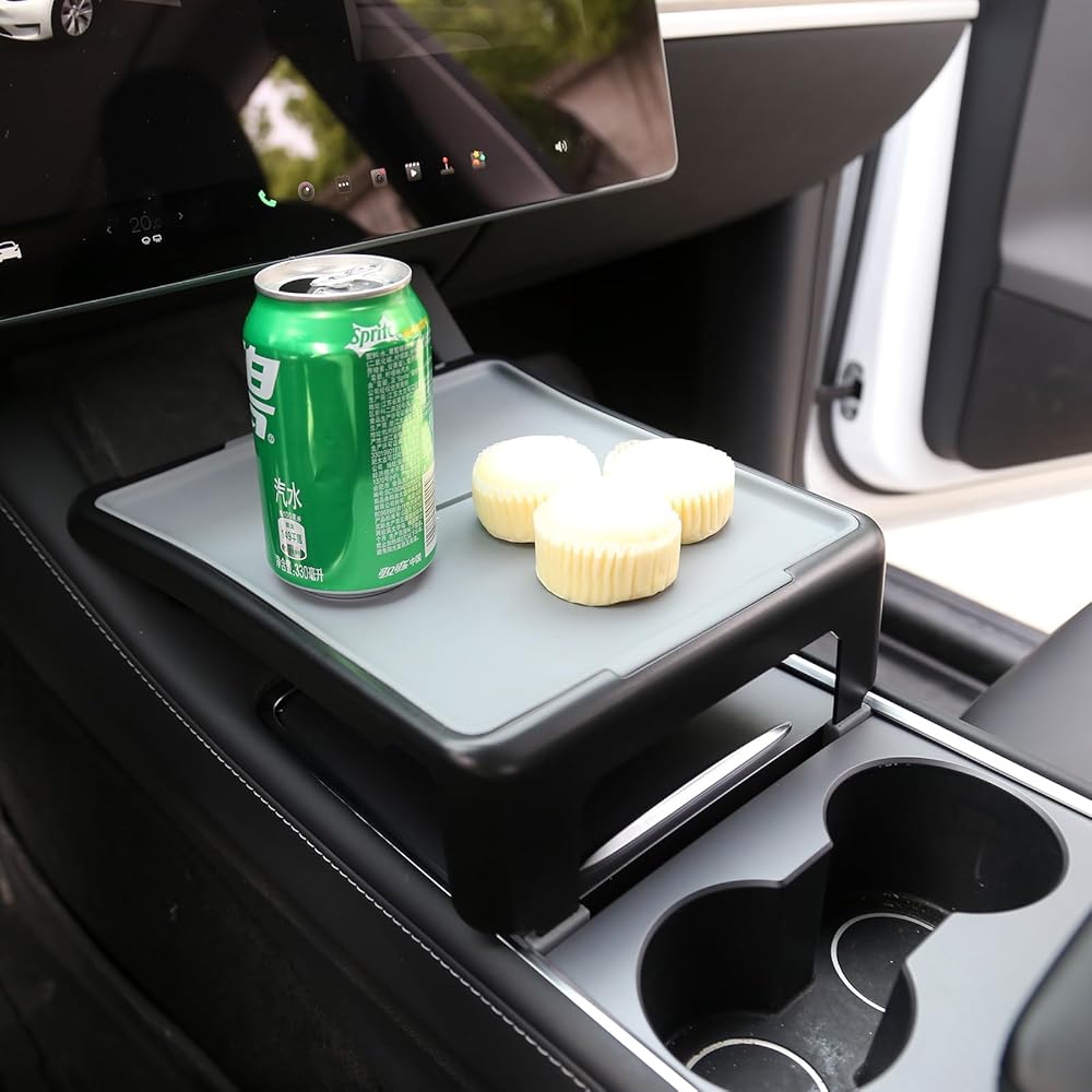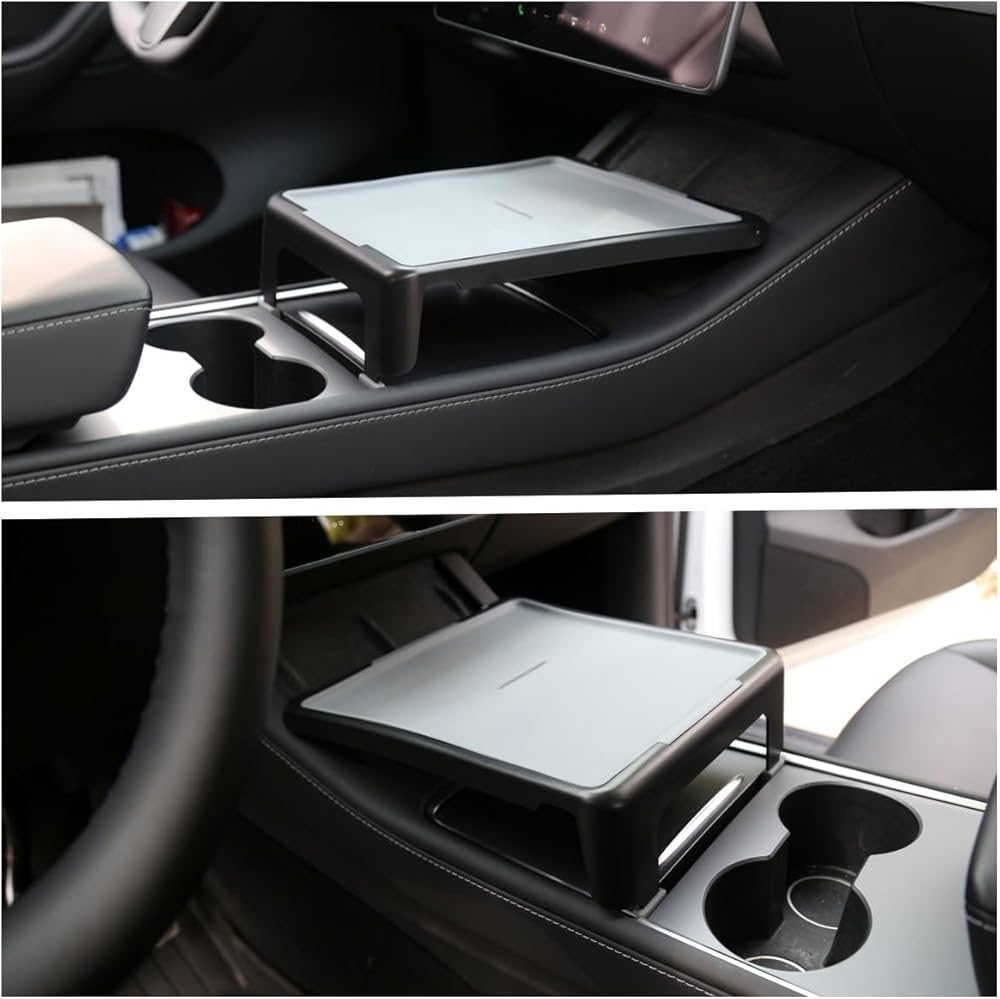 NITOYO وحدة التحكم المركزية Alset Tray Tray مناسبة لطراز Tesla Model Y Model 3، حامل أكواب مناسب لـ Tesla، طاولة طعام لمكتب الكمبيوتر المحمول في السيارة متوافقة مع ملحقات Tesla 2021 2022 2023