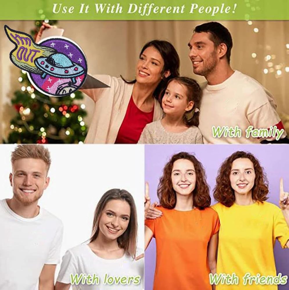 I'm Out UFO Patch Applique Cartoon UFO Planet Embroidered Sticker Colorful Iron On/Sew On Patch Badge Clothes Bags Accessories DIY Gift