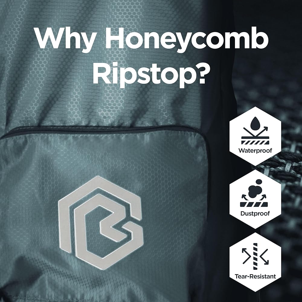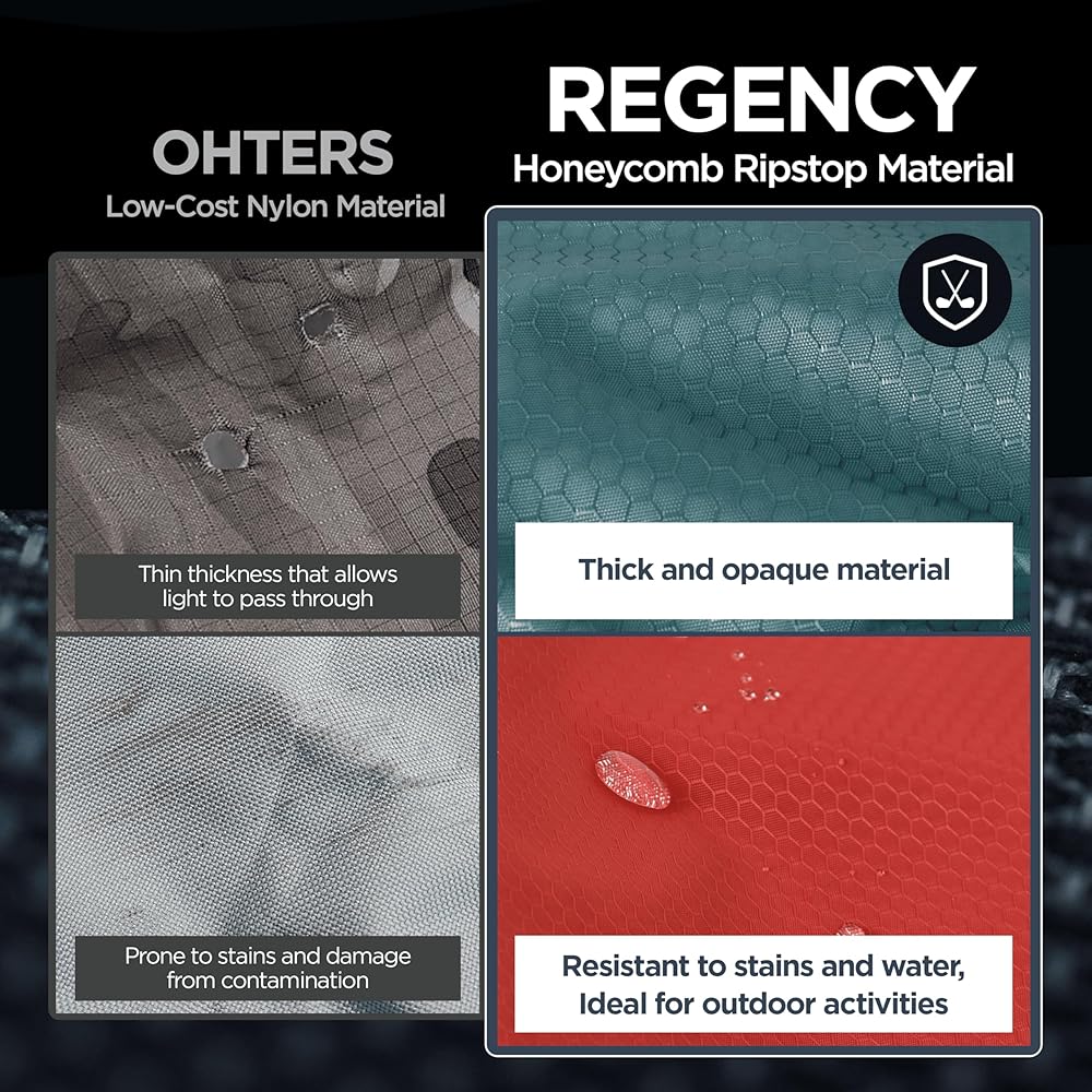 متانة لا مثيل لها: استمتع بالحماية القصوى مع غطاء حقيبة الجولف الخاص بنا، المصنوع من مادة مقاومة للتمزق على شكل قرص العسل - مشهورة بمقاومتها الاستثنائية للتمزق ومتانتها الدائمة، تمامًا مثل الخيام المتميزة.