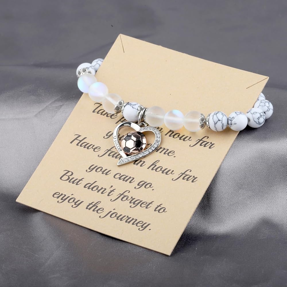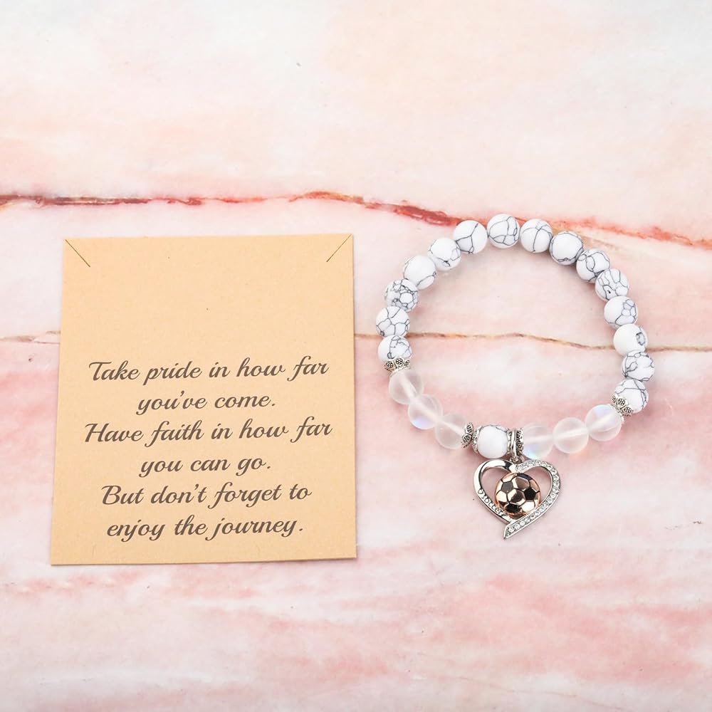 قلادة/ سوار كرة القدم هدايا لمحبي كرة القدم للاعبي كرة القدم وزملاء فريق كرة القدم في أعياد الميلاد، أو نهاية الموسم، أو البطولات، أو مسابقات كرة القدم، أو حفلات كرة القدم، أو بدون سبب. تُظهر قلادة/أساور كرة القدم هذه روح الفريق وتُظهر للآخرين أننا فريق.
