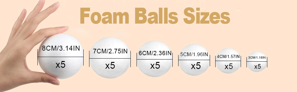 كرات إسفنجية قيمة: تأتي العبوة مع 30 قطعة كرات إسفنجية بيضاء في 6 مقاسات، بما في ذلك 1.18 بوصة، 1.57 بوصة، 1.96 بوصة، 2.36 بوصة، 2.75 بوصة، 3.14 بوصة. كل حجم فيه 5 قطع. حجم وكمية كافية يمكن أن تلبي احتياجاتك.