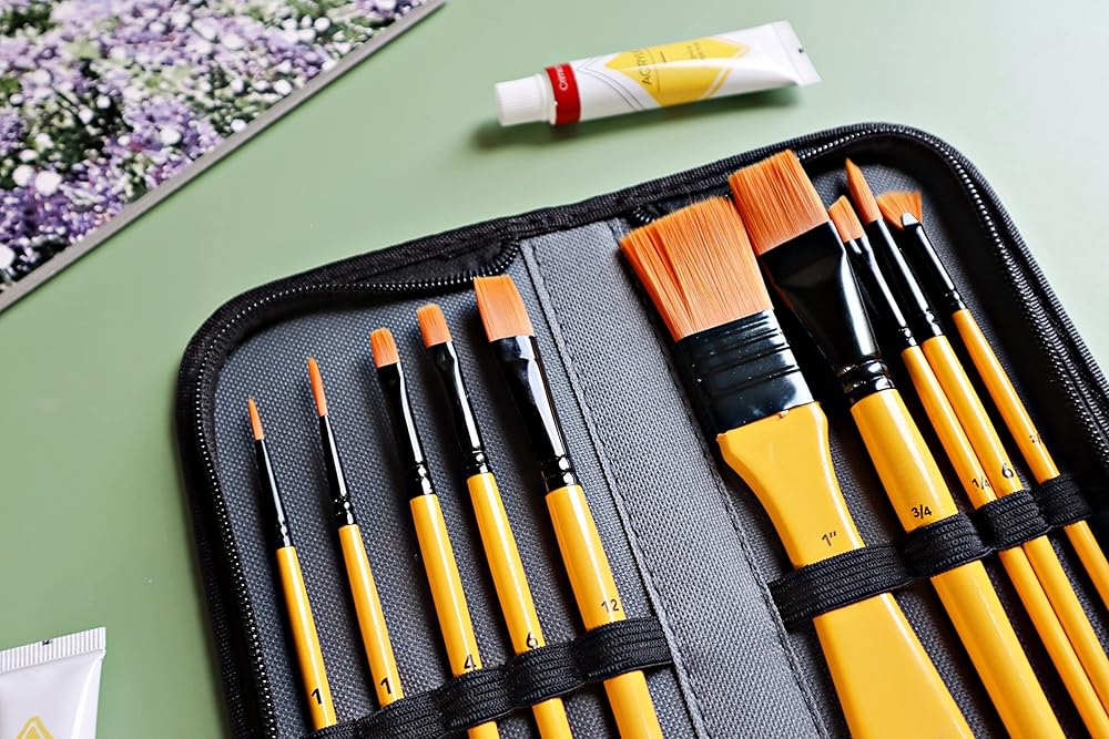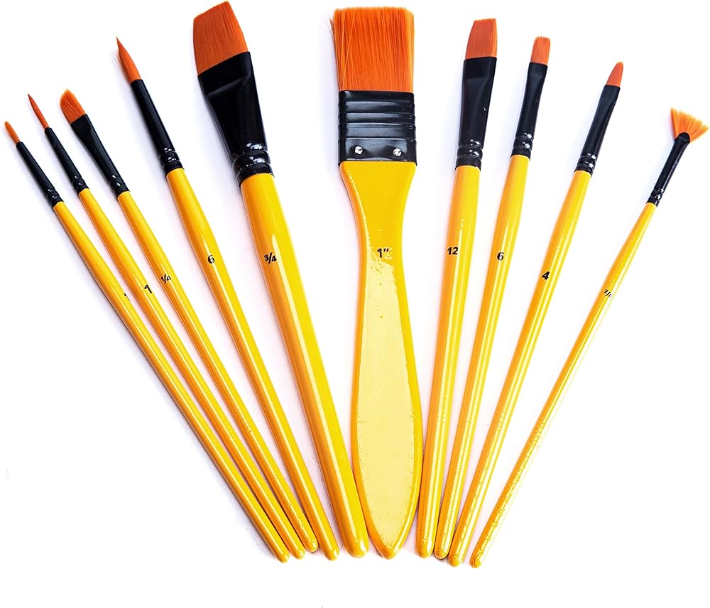 Includes 10 pieces premium quality brushes in all different shapes and sizes (see details in the pictures) with a free carrying holder, make these art paint brushes perfect for any level of artist.