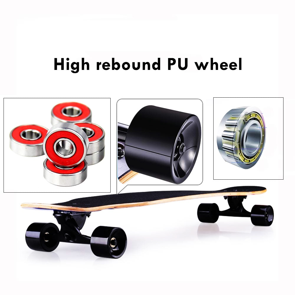 6045pu wheels with high precision chrome steel ABEC-7 bearings. 80A soft PU Wheels-Better grip to the road while carving, riding or performing other tricks;