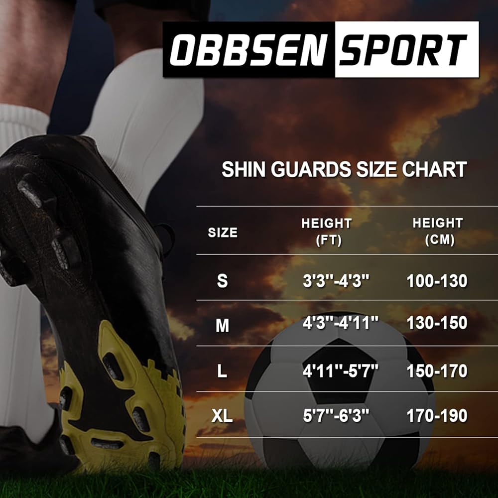 ⚽【ملاحظة المقاس】: غالبًا ما يتم تحديد حجم وسادات ساق كرة القدم وفقًا للطول، وتأتي واقيات ساق الكاحل من Obbsen بأربعة أحجام وتناسب الأطفال والشباب والبالغين. يرجى الرجوع إلى جدول مقاسات Obbsen لاختيار المقاس المناسب بناءً على طولك.