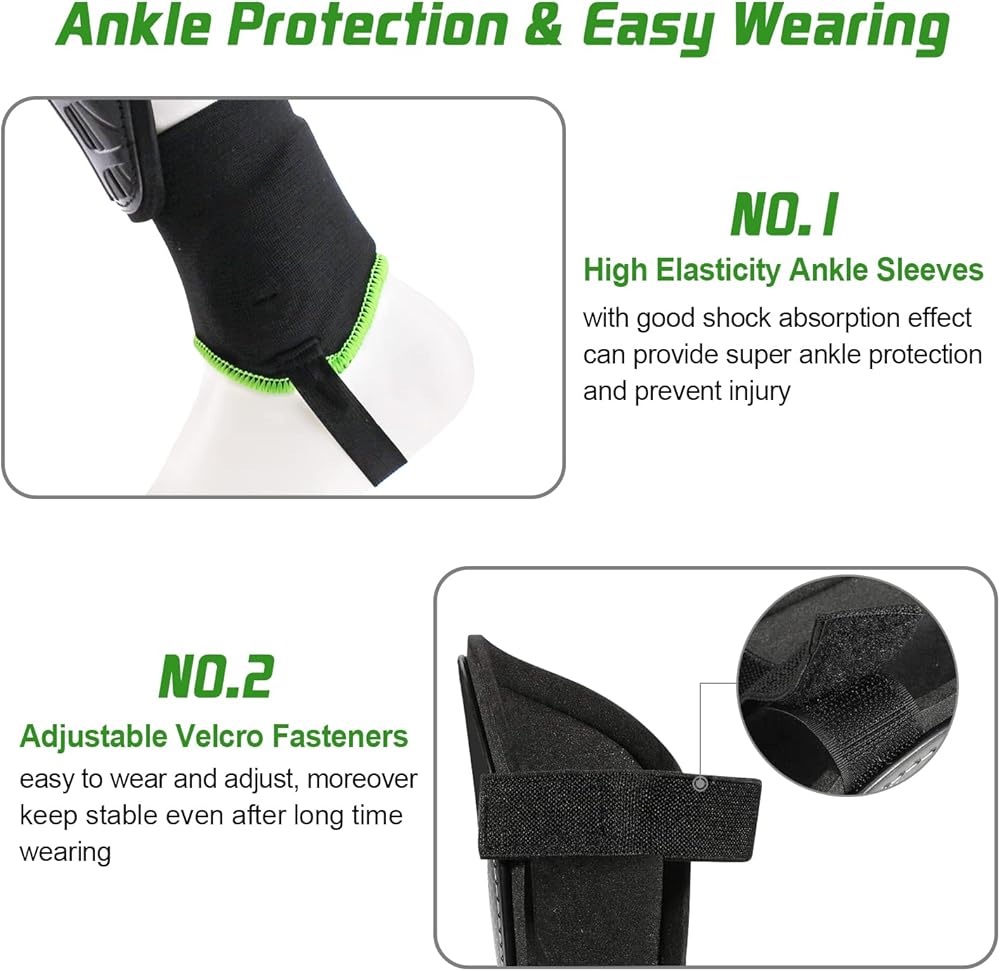 ⚽【حماية الكاحل للمدافعين】: يفيد واقي ساق الكاحل المدافعين في الملعب أكثر من غيره، فهو يشتمل على ركاب تنزلق تحت القدمين ويوفر بطانة إضافية على جانبي الكاحل لحمايته من الركلات.