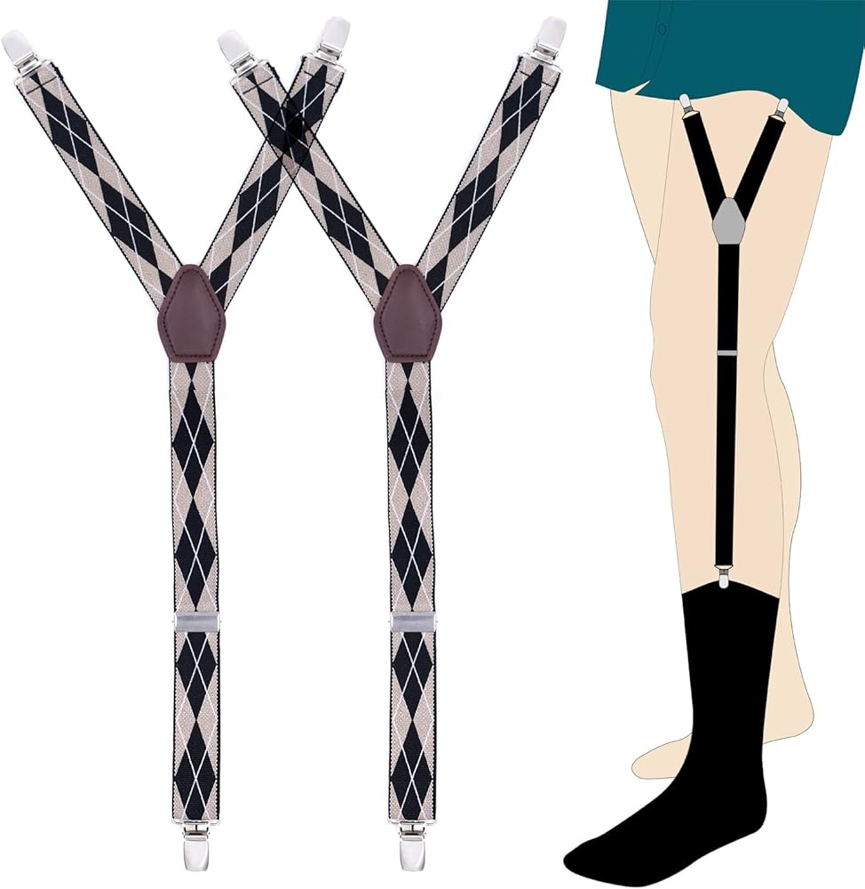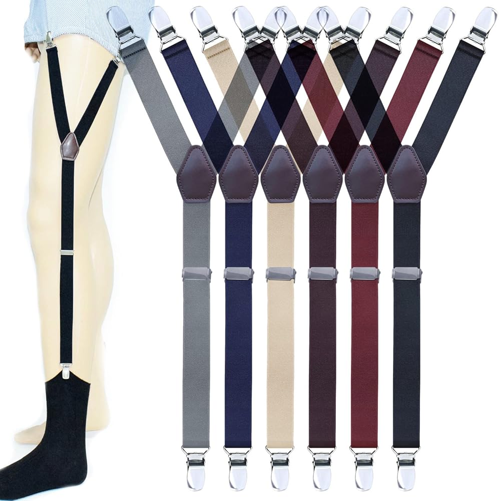 قميص رجالي يبقى قابل للتعديل، جوارب بأشرطة رباط مرنة على شكل حرف Y ومشابك مانعة للانزلاق