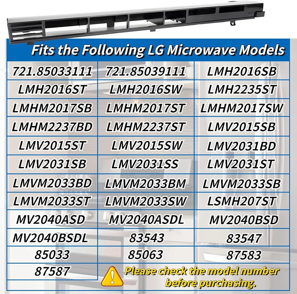 Compatible Model:Compatible with LG Microwave models LMHM2017SB, LMHM2017ST, LMV2015SB, LMV2015ST, MV2040BSD, MV2040ASDL, MV2040BSDL,MV2040ASD,721.85033111,721.85039111,LMH2016ST,LMV2031ST,LMV2031ST,LMH2016ST,LMHM2237BD,LMHM2017SW,LMHM2237ST and more.