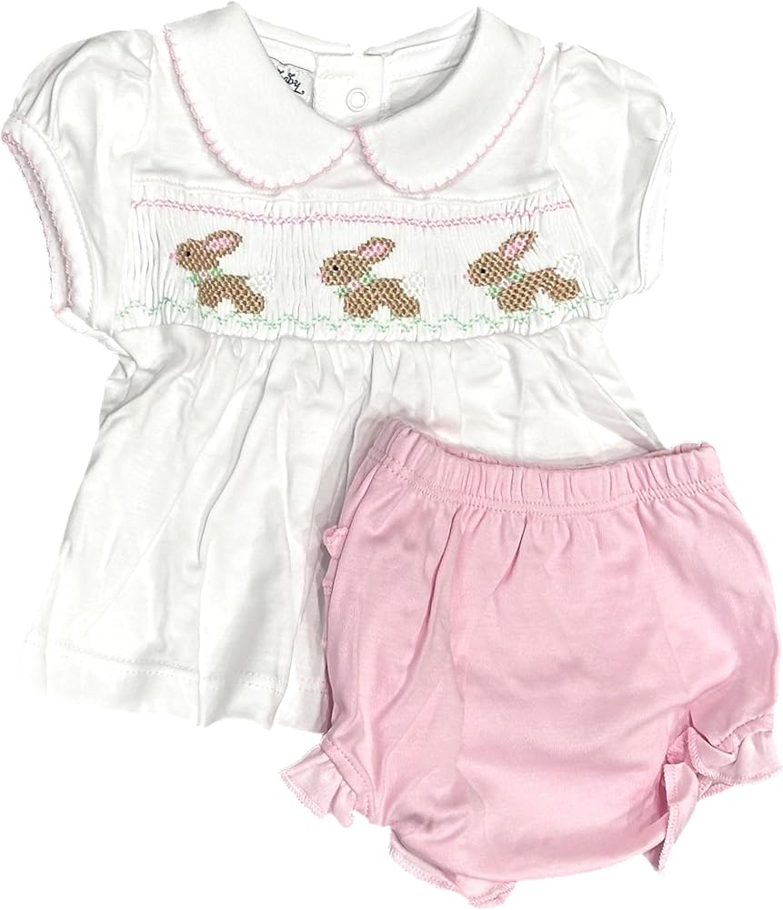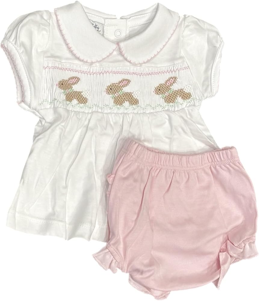 Magnolia Baby Baby Girl Springtime Bunny Classics Smocked Collared Ruffle Diaper Cover Set Pink