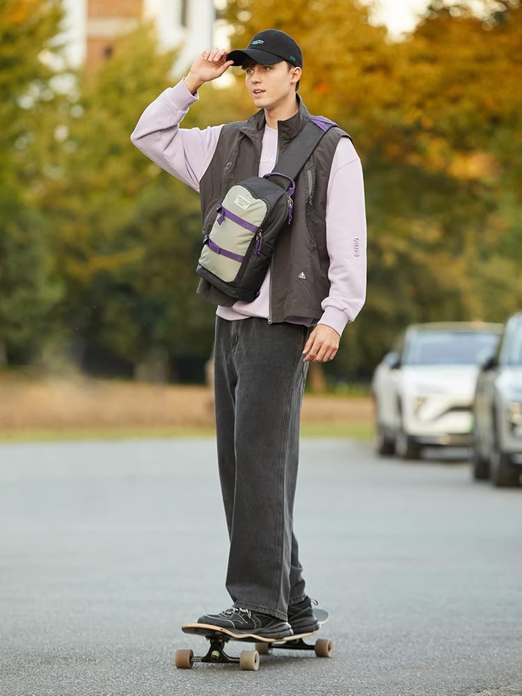 • قابلة للتعديل ومريحة: وسادة سميكة على الظهر وحزام لتحسين الراحة والثبات. يمكن تبديل الحزام القابل للتعديل إلى أي جانب. يمكن تعديل الحزام المرن لحقيبة الصدر هذه من 17 إلى 46.5 بوصة ليناسب بغض النظر عن الحجم.