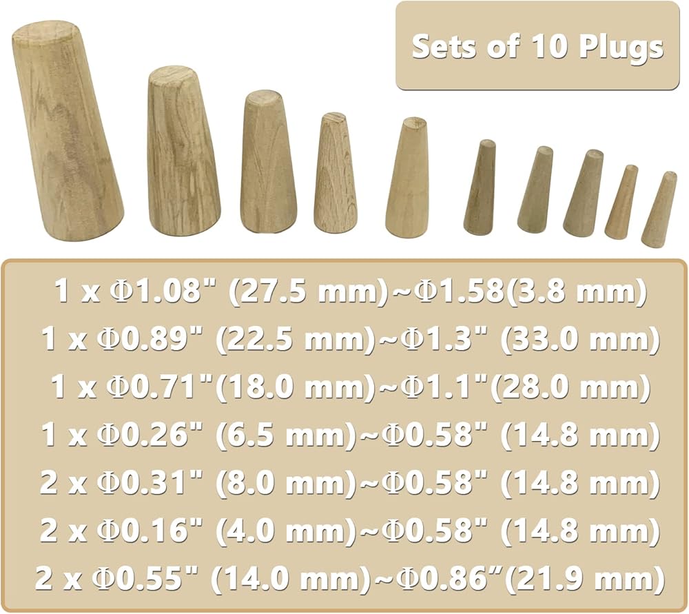 asdmm قارب الطوارئ مجموعات المكونات الخشبية الناعمة، البحرية مدبب مخروطي من خلال بدن استنزاف توقف، متنوعة 1/5 "إلى 1 3/5"، 10 قطع
