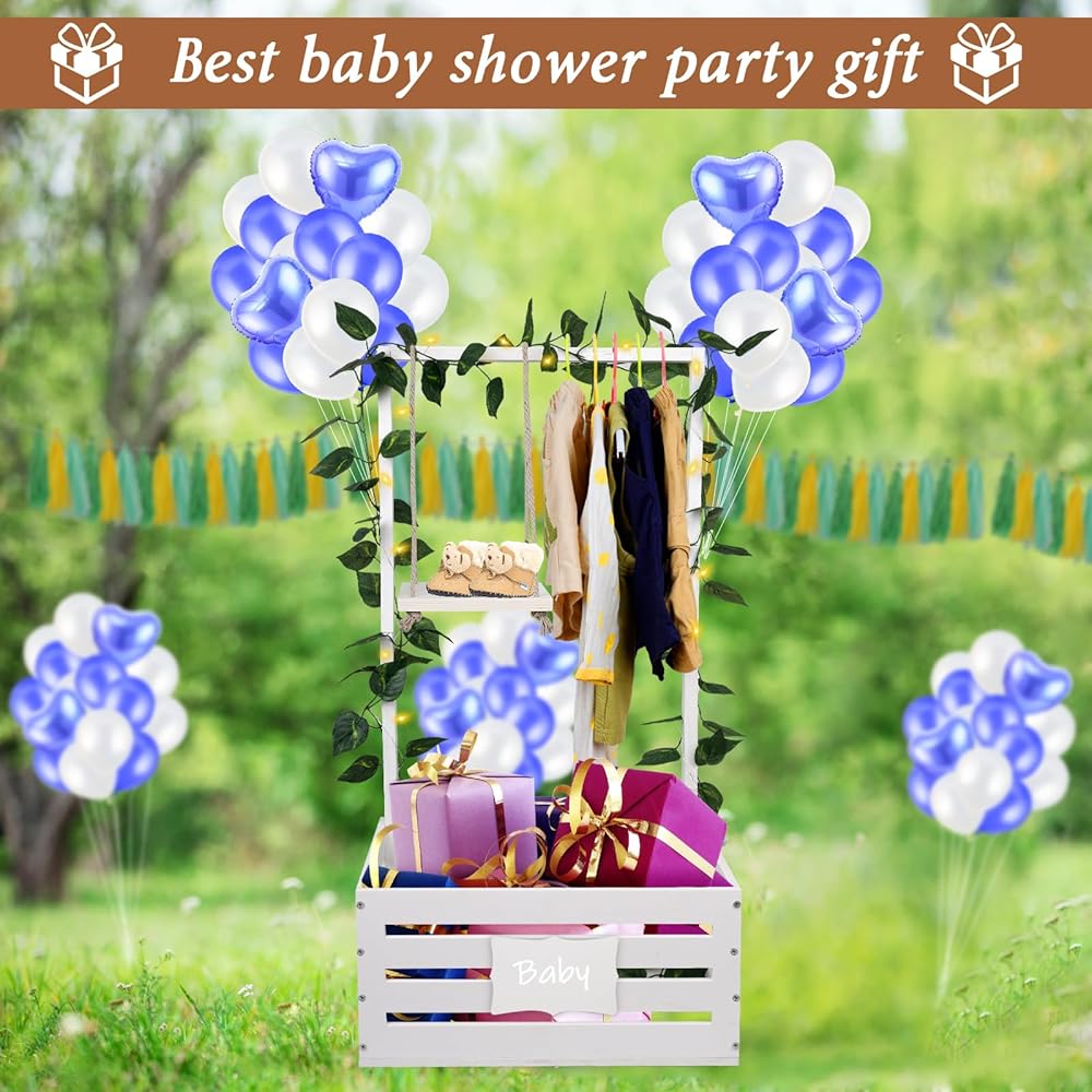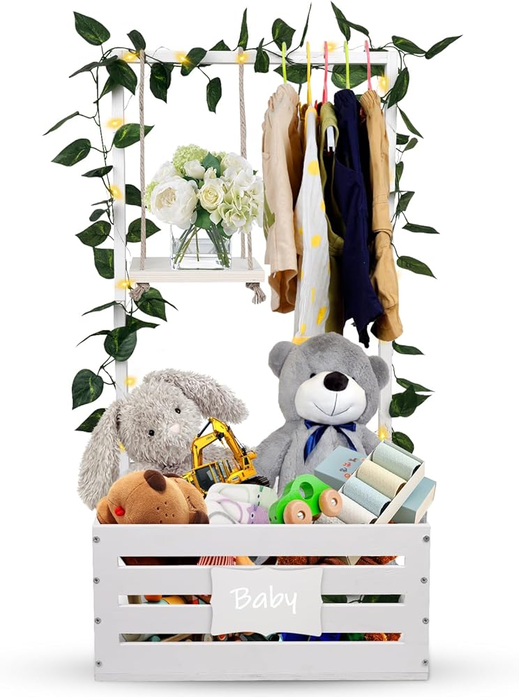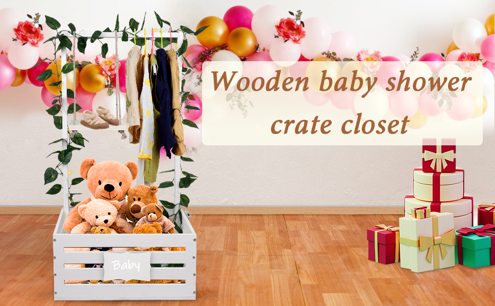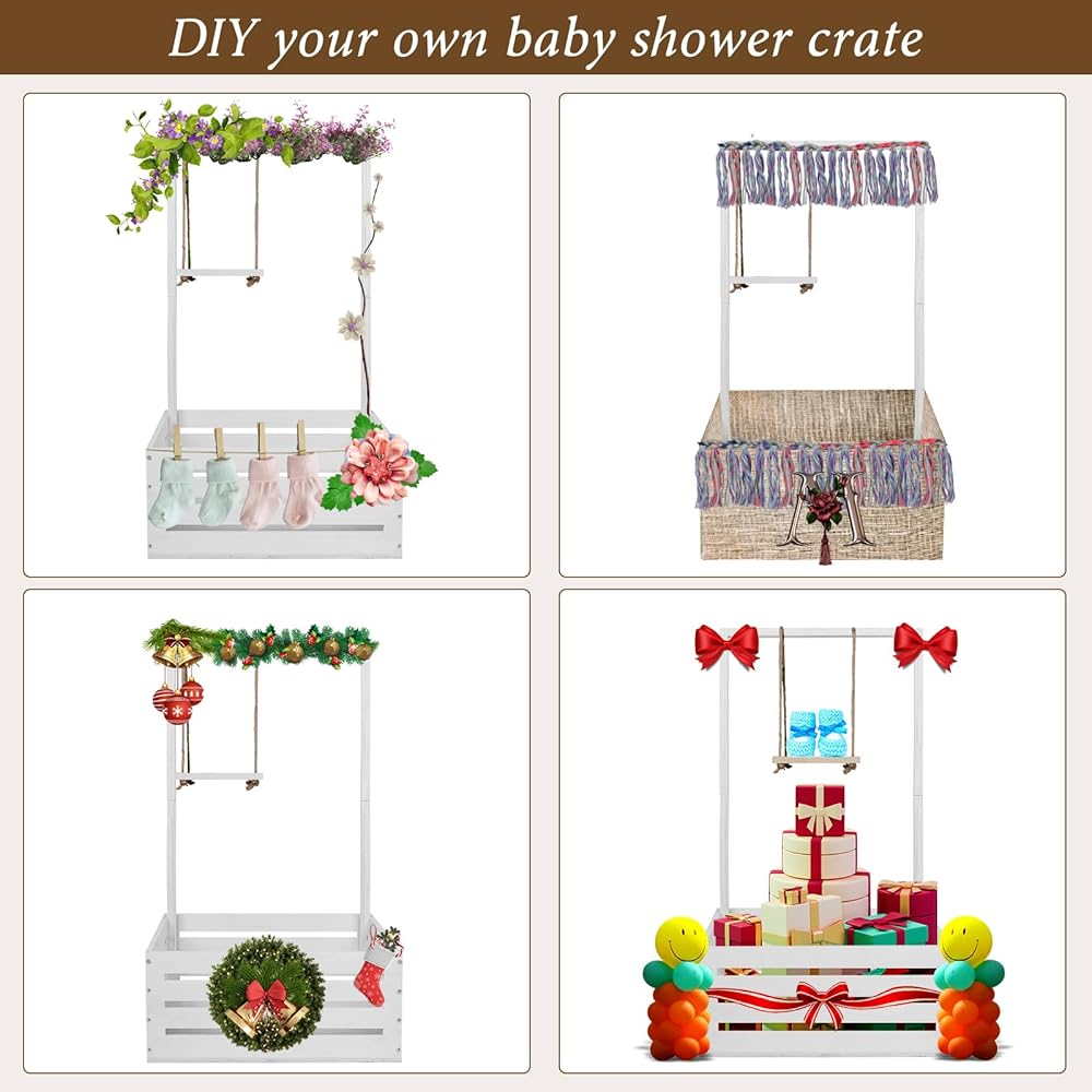 سلة استحمام الطفل، قفص استحمام الطفل مع رف شماعات مرتفع 23.6 بوصة وأرجوحة، خزانة قفص استحمام خشبية للأطفال، سلة دش الطفل للحمل، صندوق تخزين هدايا الآباء الجدد للحمل (أبيض)