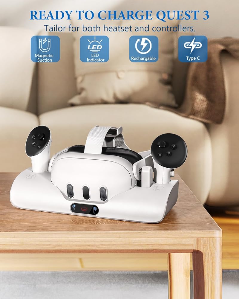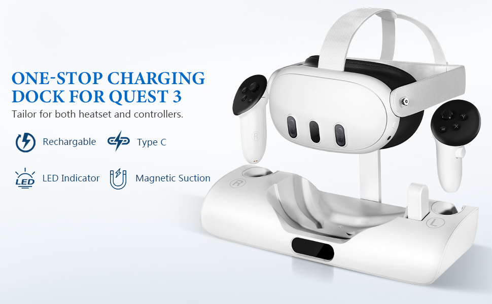 • حل الشحن المتزامن: تضمن قاعدة الشحن Colelulu لسماعات الرأس ووحدات التحكم Meta Quest 3 وضعًا دقيقًا بفضل تصميمها المغناطيسي. قم بشحن كل من سماعة الرأس ووحدات التحكم في وقت واحد، مما يؤدي إلى تبسيط العملية.