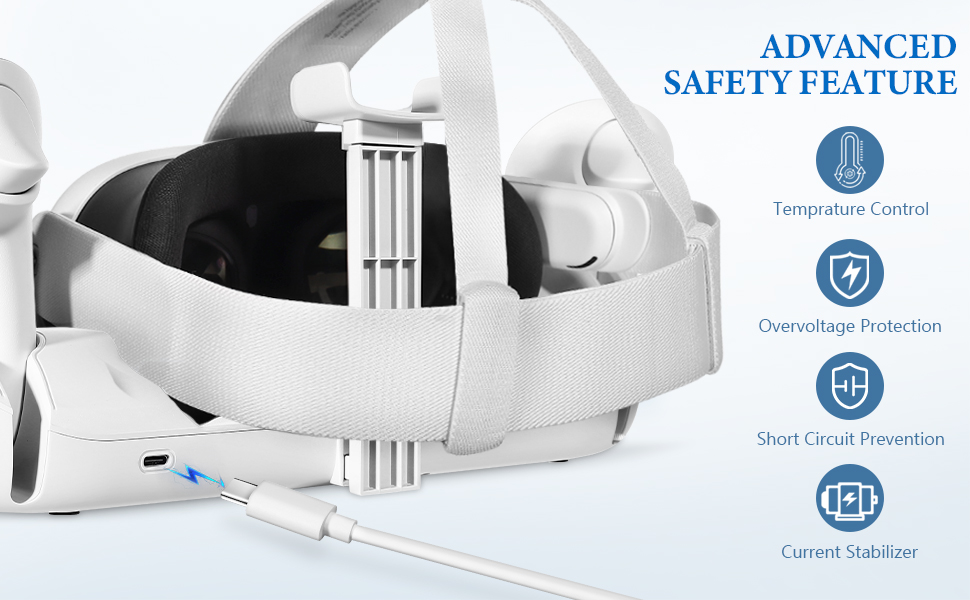 • شحن عالي الكفاءة: تعمل محطة الشحن Colelulu على تشغيل سماعة الرأس خلال 3-4 ساعات ووحدة التحكم خلال 1-2 ساعة. ملاحظة: تذكر محاذاة البطاريات بشكل صحيح والتأكد من أن نقاط الاتصال المعدنية الموجودة على أغطية وحدة التحكم تلامس الصناديق الفضية الموجودة على البطاريات.