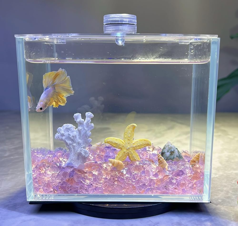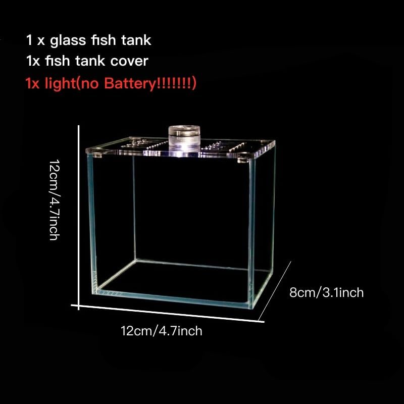 [Accessories]: this mini fish tank kit include 1 x glass fish tank, 1x fish tank cover and light(no Battery!!!!!!)