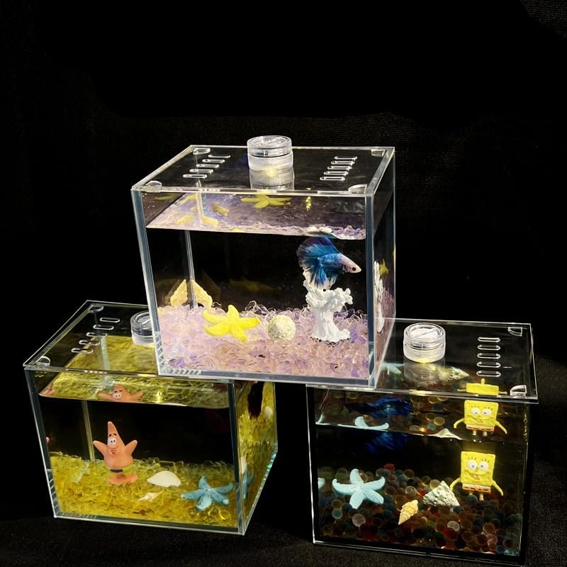 [size]: the small beta fish tank measure about 12x8x12cm (4.7x3.1x4.7inch),approx 0.3gallon, please consider size before order