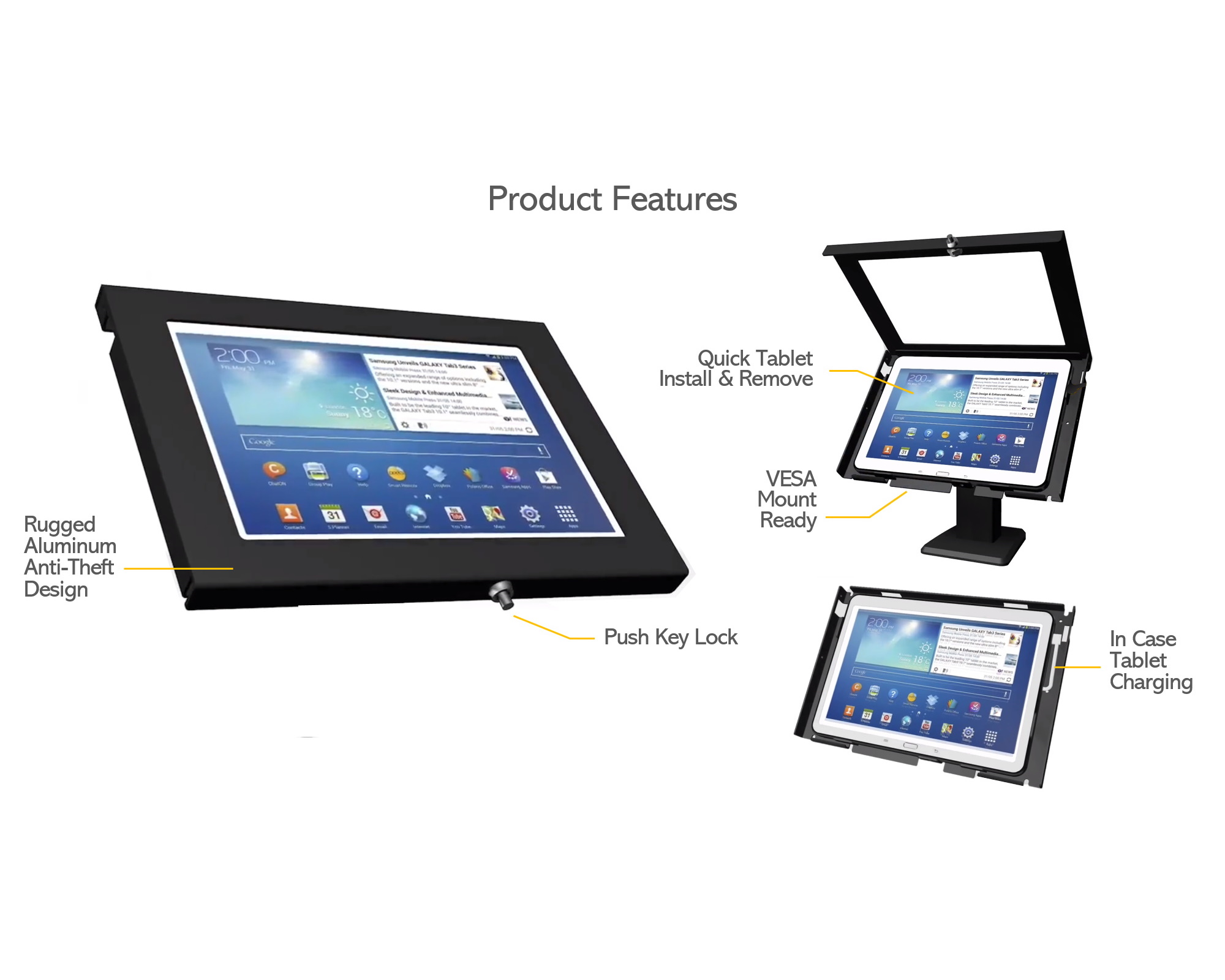 - وصول كامل للشاشة للحصول على وظيفة اللمس الكاملة، قم بالتثبيت في ثوانٍ! قفل بزر ضغط واحد، تصميم أمان مضاد للسرقة