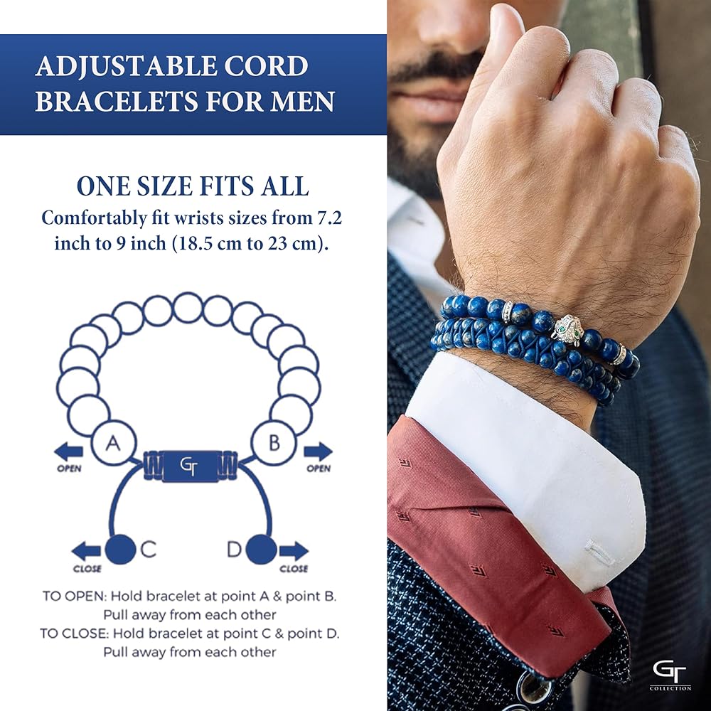 أساور حبل قابلة للتعديل للرجال - هذا السوار المصنوع من الخرز الطبيعي متعدد الأغراض القابل للارتداء للغاية مغلف ويمكن أن يناسب مقاسات المعصم بشكل مريح من 7.2 بوصة إلى 9 بوصة (18.5 سم إلى 23 سم).