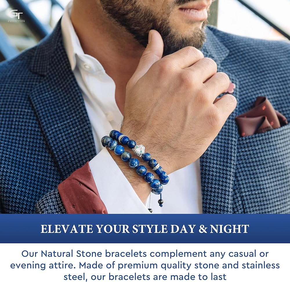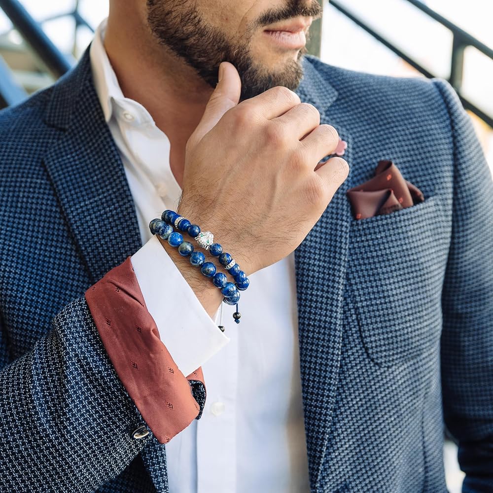 سوار ليوبارد للرجال - توفر خرزة النمر القوة والقوة، جنبًا إلى جنب مع الأحجار الكريمة التي تقدم مجموعة واسعة من الفوائد وتستخدم في الممارسات الروحية لاستعادة الطاقة وتعزيز الحب وإيجاد هدف في الحياة وتقليل ضغط الدم وتوازن الشاكرا.