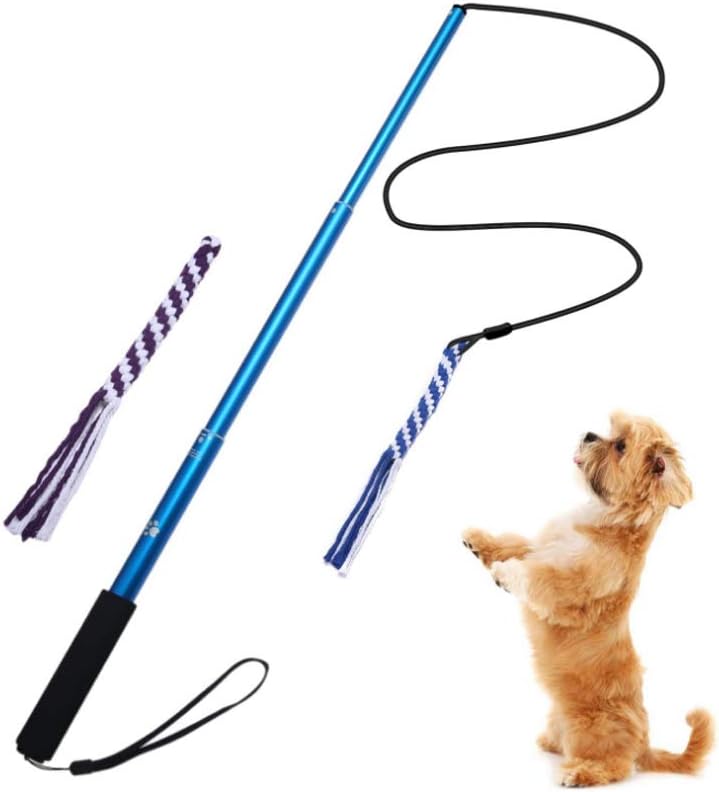 ألعاب الكلاب التفاعلية من أمييس - عمود مغازلة قابل للتمديد مع قطعتين من الحبال المضفرة للترفيه في الهواء الطلق والتدريب والتمرين