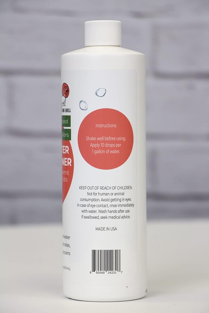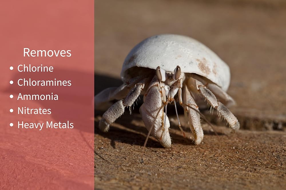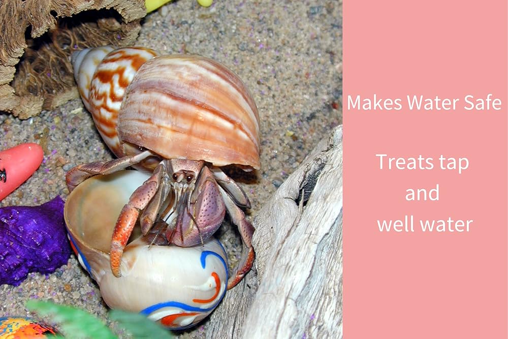 • All-in-one water conditioner treats BOTH freshwater AND saltwater for hermit crab pools.