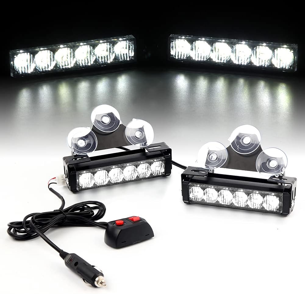 • 🚨 【NEW DESIGN】 NO.32 Brand New Series Upgrade 2 LED Emergency Strobe Light Bar for Roof / Dash / Windshield / Grille / Deck Universal all Vehicle work with 12V voltage Strobe Flashing Lights. New series brighter and more effective than standard LED strobe lights, Up to 30,000 hrs life expectancy. Even visible during the daytime conditions.