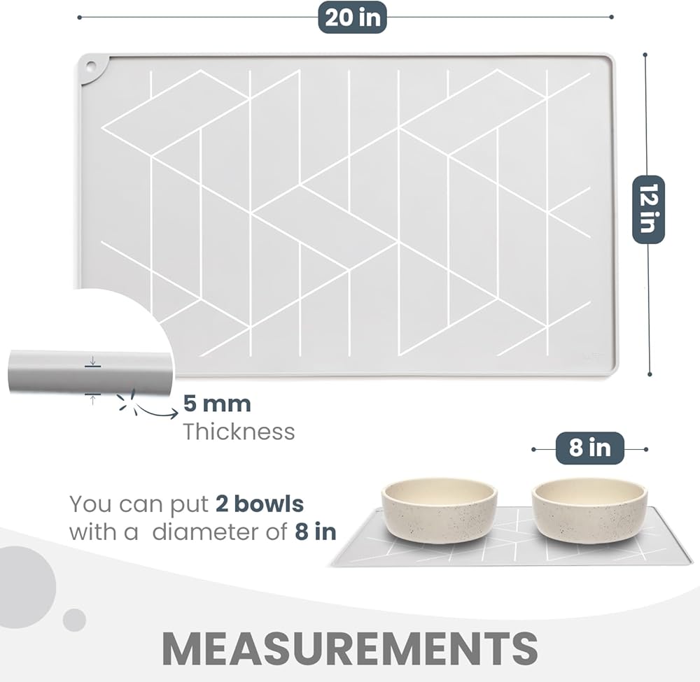 بساط تغذية الكلاب من WePet، بساط تغذية الحيوانات الأليفة مصنوع من السيليكون المقاوم للماء وغير قابل للانزلاق، آمن للاستخدام في غسالة الأطباق، يمنع انسكابات الطعام وفوضى وعاء الماء، للكلاب والقطط، مقاس 20 × 12 بوصة، لون رمادي فضي