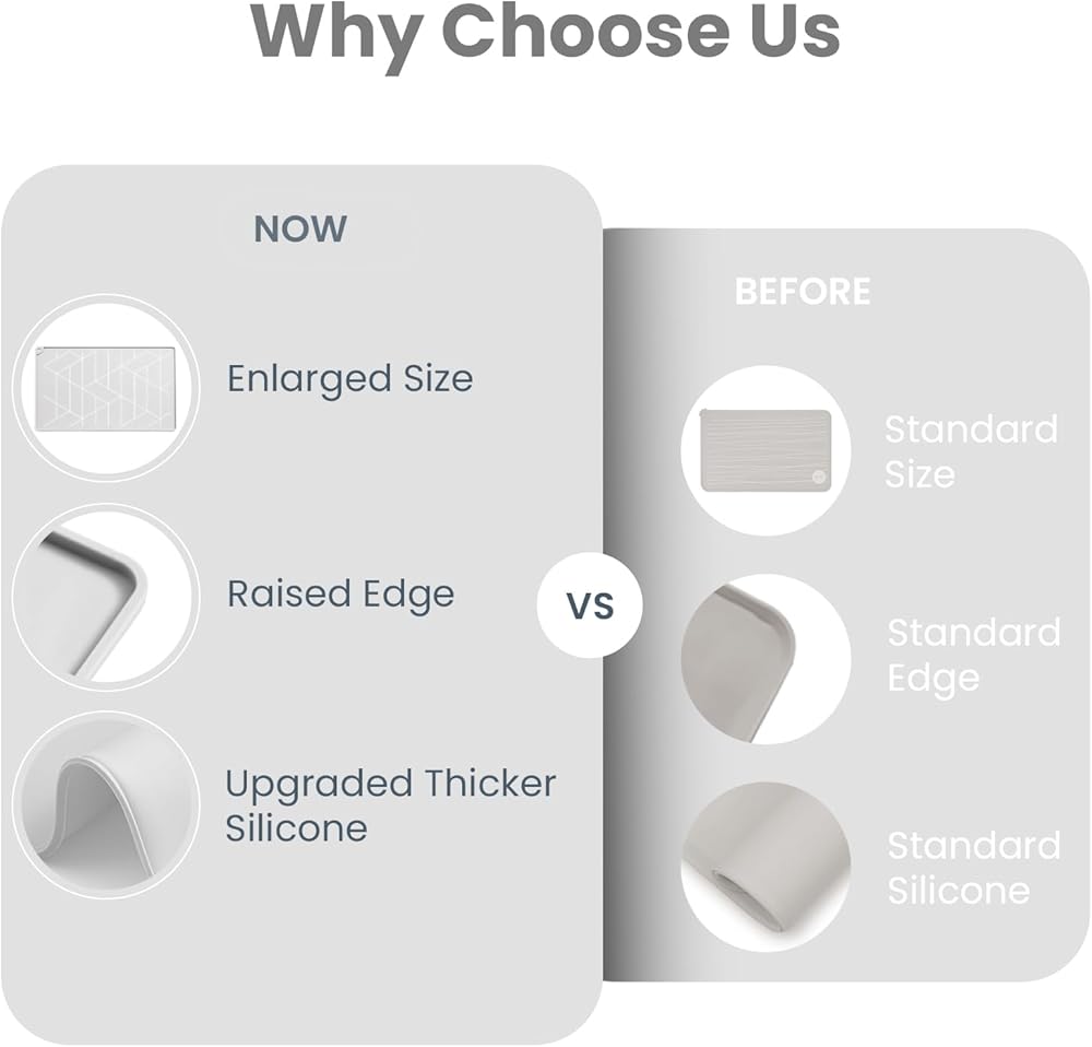 [COLOR & SIZE]: Silver Grey Fashion, 20 x 12 Inch. Extra High Raised Edge. The mat can be rolled up for storage.