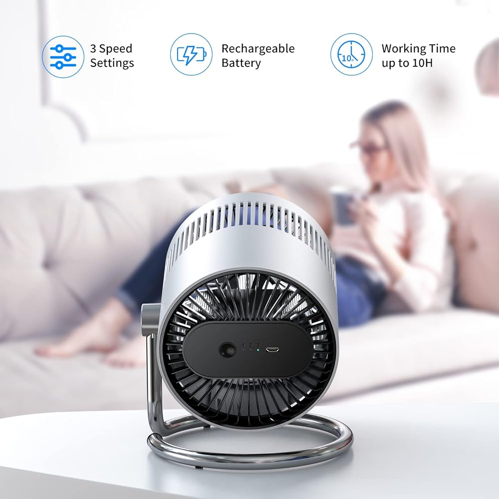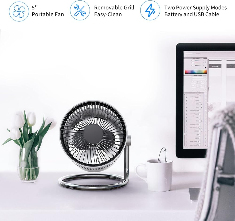 【مروحة مكتب صغيرة】مروحة صغيرة مع رياح قوية، مروحة فائقة الهدوء تتكون من جسم أبيض وقاعدة معدنية، حجم صغير مع تصميم عصري يجعلها تمتزج بسهولة مع سطح المكتب والمنضدة الليلية لغرفة النوم وطاولة غرفة الدراسة وطاولة المطبخ والمزيد.