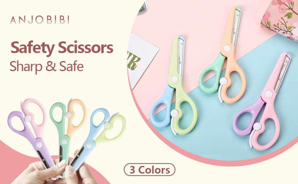 مقص أمان للأطفال مكون من 3 قطع، مقص تدريب حرفي، مقبض مريح مثالي لقطع الورق، (وردي + برتقالي + أزرق)