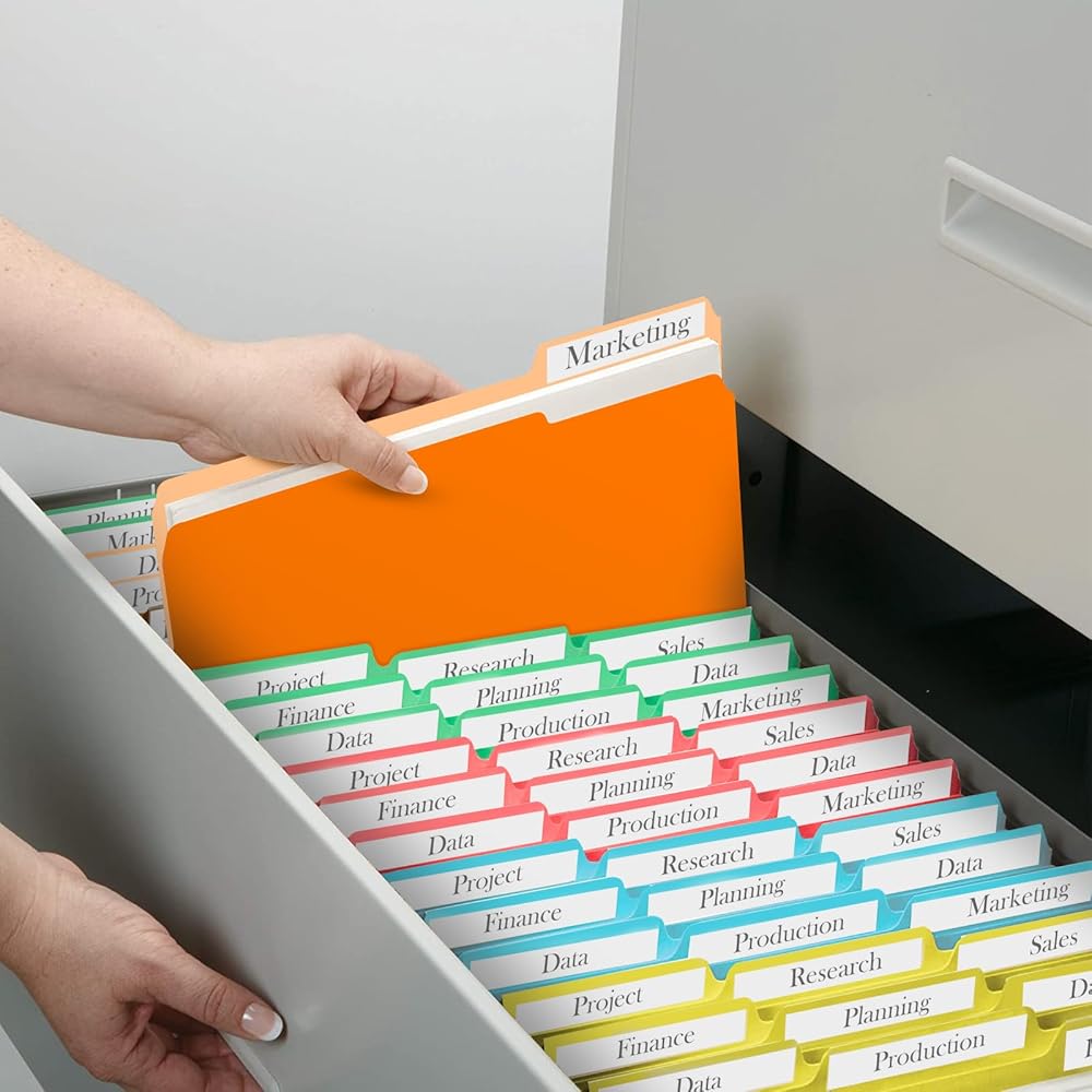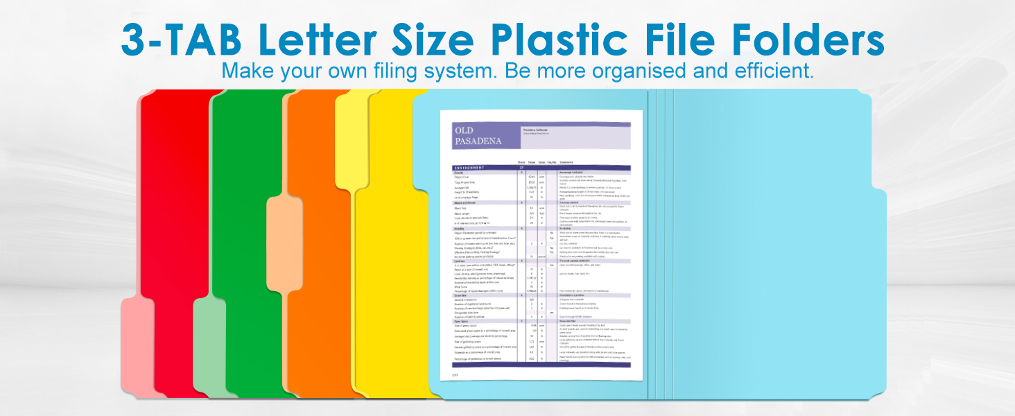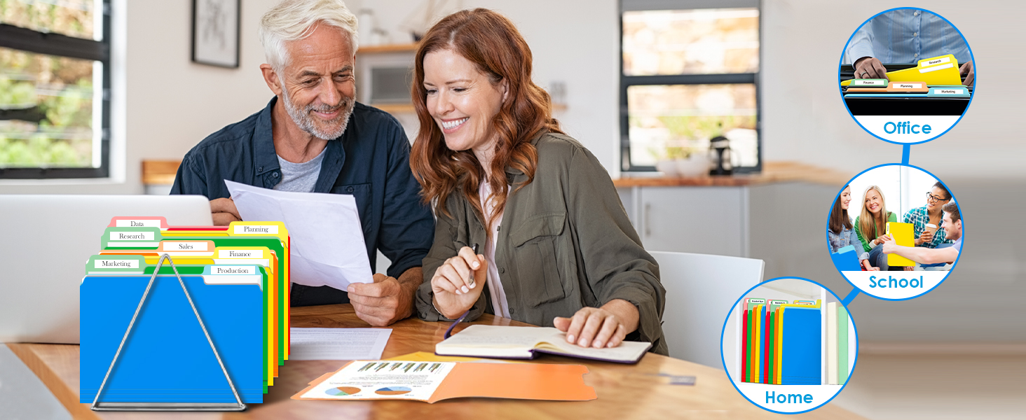 إنشاء نظام حفظ ملفات فعال - يمكنك تنظيم الملفات وتصنيفها عن طريق ترميز الألوان، وكذلك التمييز بينها بشكل أكثر دقة من خلال العلامات. يعمل التصنيف الفعال والبحث السريع على تحسين كفاءة العمل بشكل كبير. تُعد مجلدات الملفات عالية التحمل الخاصة بنا رائعة للوازم المكتبية والمدرسية والمنزلية.