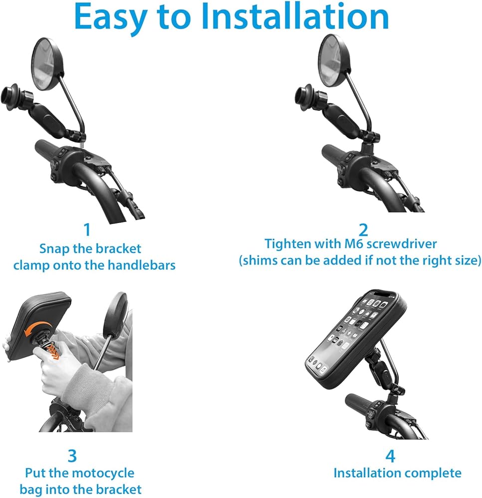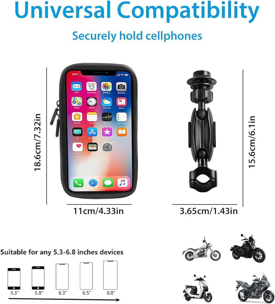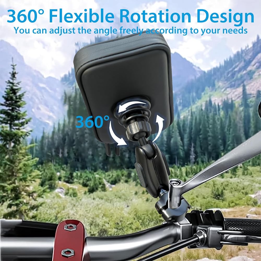 تعديل زاوية 720 درجة: نمنح حقيبة الهاتف هذه تصميمًا قابلاً للتعديل بزاوية 720 درجة، مما يجعل من السهل عليك عرض المعلومات أثناء الركوب. ليس ذلك فحسب، بل إنها تتمتع أيضًا بوظيفة التعديل لأعلى ولأسفل، لذلك لا داعي للقلق بشأن ارتفاعها أو انخفاضها جدًا.