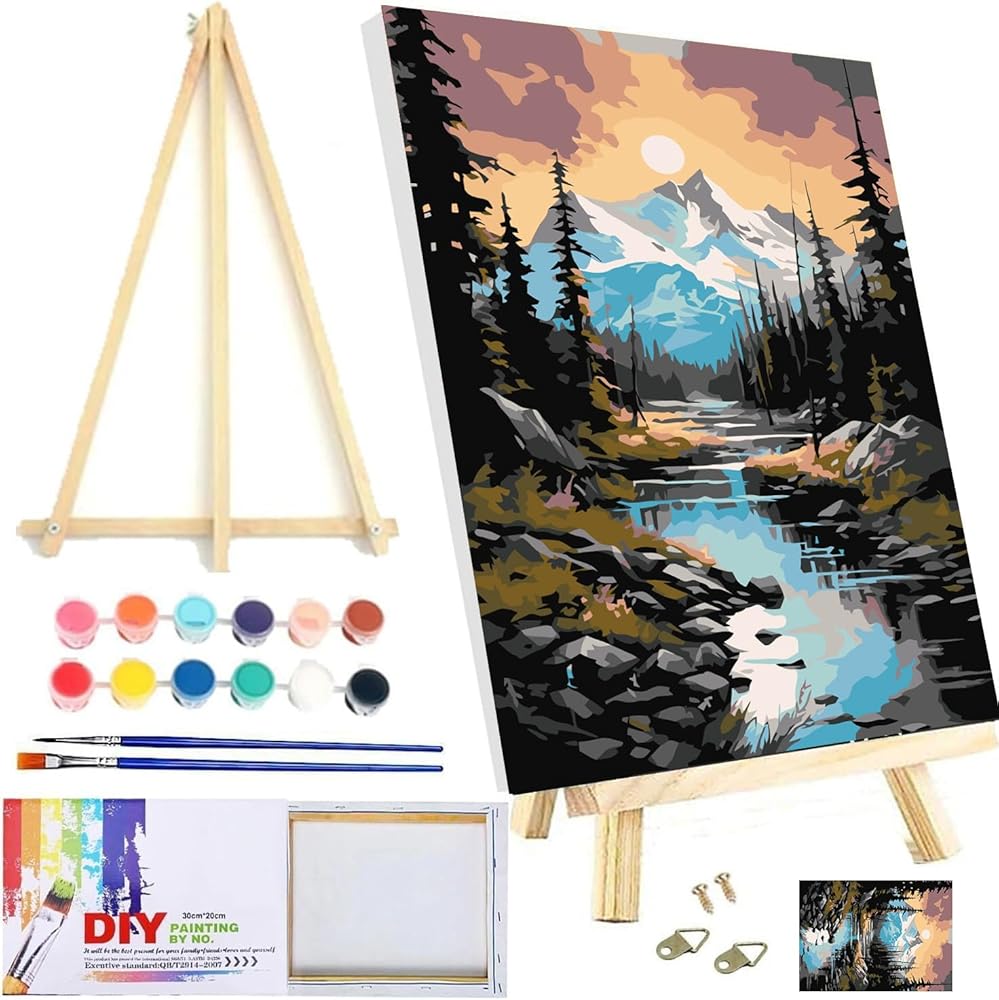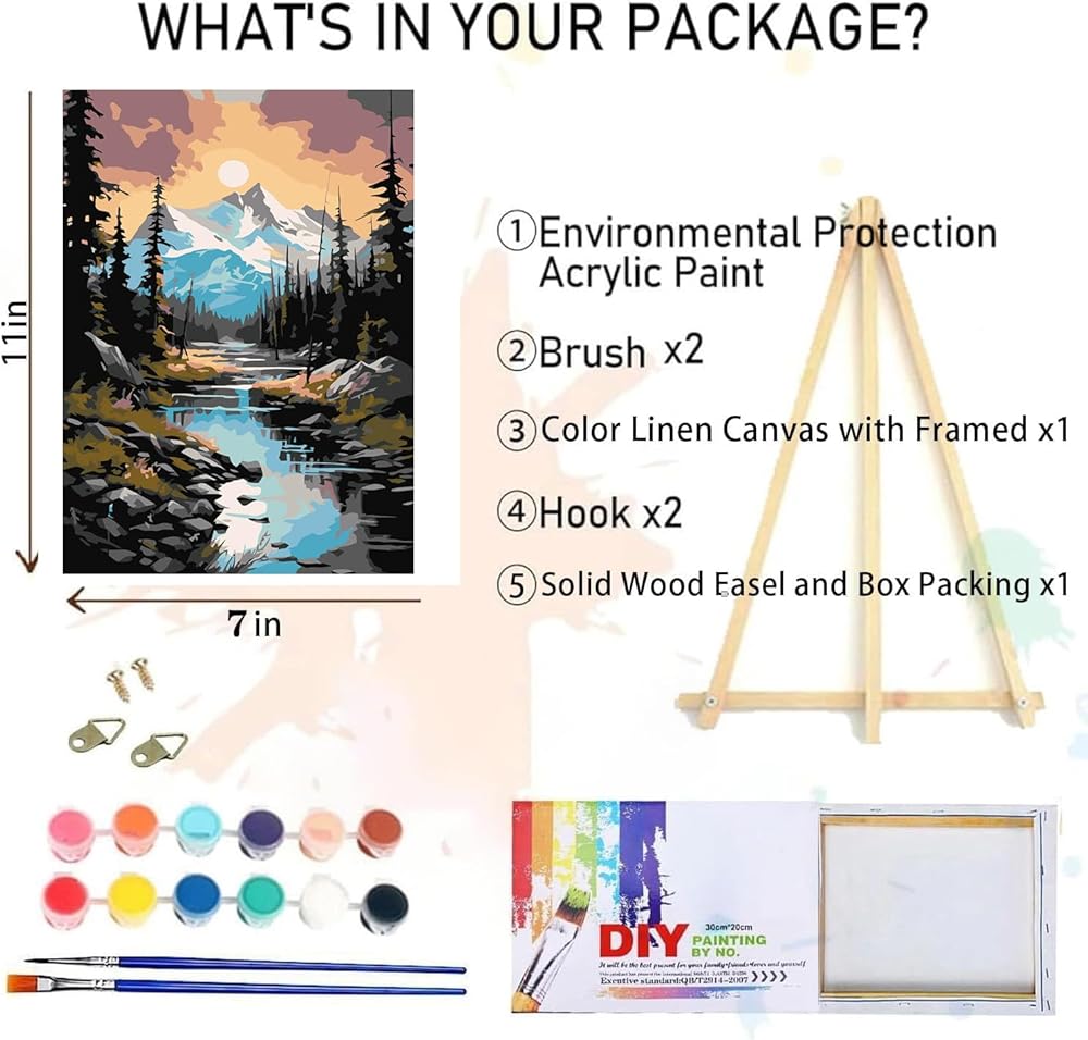 【محتويات العبوة】مجموعة القماش المؤطرة للطلاء بالأرقام للبالغين تحتوي على كل ما تحتاجه: قماش فني مزخرف مطبوع مسبقًا (مؤطر)، حامل خشبي، فرشتين عاليتي الجودة، طلاء أكريليك متطابق، خطافات أظافر، ومسامير.