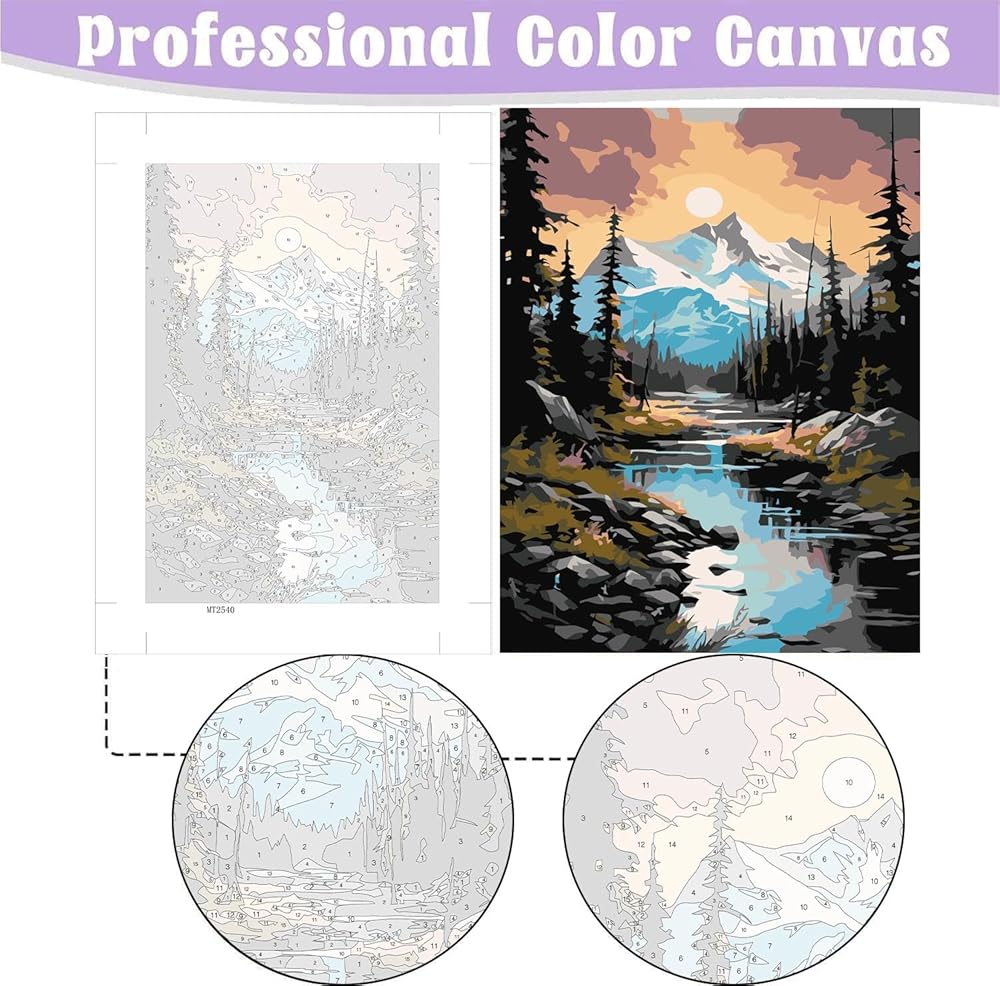 【قماش ملون عالي الدقة وإطار خشبي】يضمن القماش الملون عالي الدقة الخاص بنا مناطق رقمية واضحة ويقلل من إجهاد العين أثناء جلسات الرسم الطويلة. القماش المؤطر لن يتجعد، والحامل الخشبي المتضمن يجعل عرض تحفة فنية الخاصة بك بلا مجهود.