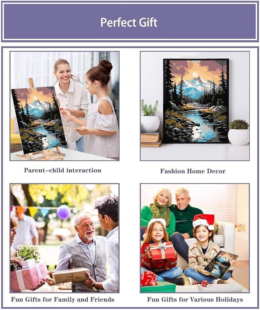 【ديكور وهدية مثالية】أكمل تحفة فنية وأضف إشراقة أي غرفة بجمالها. تعتبر اللوحات النهائية ديكورًا ممتازًا للمنازل والمكاتب والفنادق والمطاعم. يُعد تطبيق Paint by Numbers هدية مثالية لأعياد الميلاد وحفلات الزفاف والحفلات وعيد الميلاد وغير ذلك الكثير، وهو مناسب لجميع الأعمار.