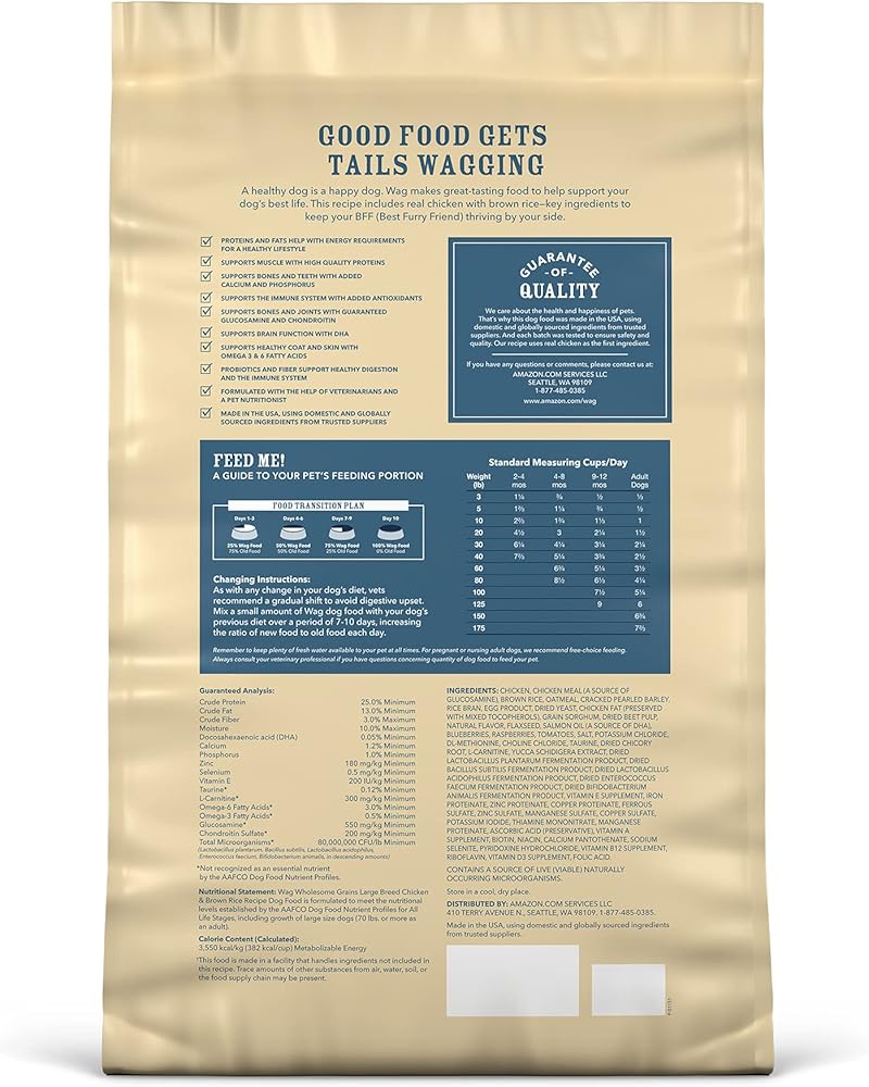 علامة أمازون التجارية – طعام الكلاب الجاف من السلالات الكبيرة، الدجاج والأرز البني، كيس 15 رطل