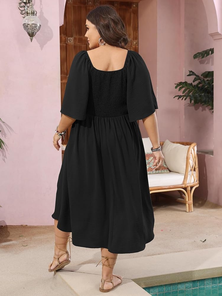 المواد: هذا الفستان الصيفي ذو المقاس الكبير مصنوع من نسيج خفيف الوزن وملمس البشرة، ناعم ومتدفق. إنه خيار رائع أن تكون أحد مجموعة فساتين الصيف الخاصة بك
