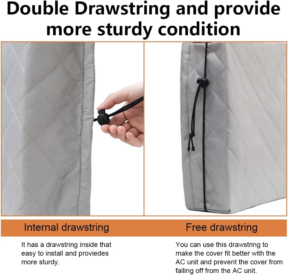عزل مزدوج: طبقة مزدوجة من البوليستر/القطن، جودة عالية وموفرة للطاقة، تمنع الرياح والبرد من الدخول إلى مكيف الهواء وتقليل تكلفة التسخين بشكل فعال خلال الشتاء.