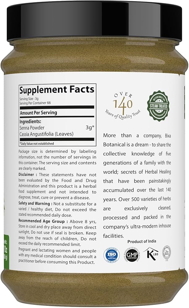 Senna leaves is generally used for its laxative properties. These compounds work as a laxative by smoothing & relaxing the tissues of tract. As per Ayurveda Senna helps to eliminate Vitiated & putrefied Pitta through motion and gives relief in fever. Senna aids in removal of toxins from skin layer and removing it from intestines. Sonamukhi helps to remove extra phlegm from lungs and reduce intensity of cough. Scientific studies of senna has shown promising role in combating harmful bacteria & as ideal antioxidant herb.
