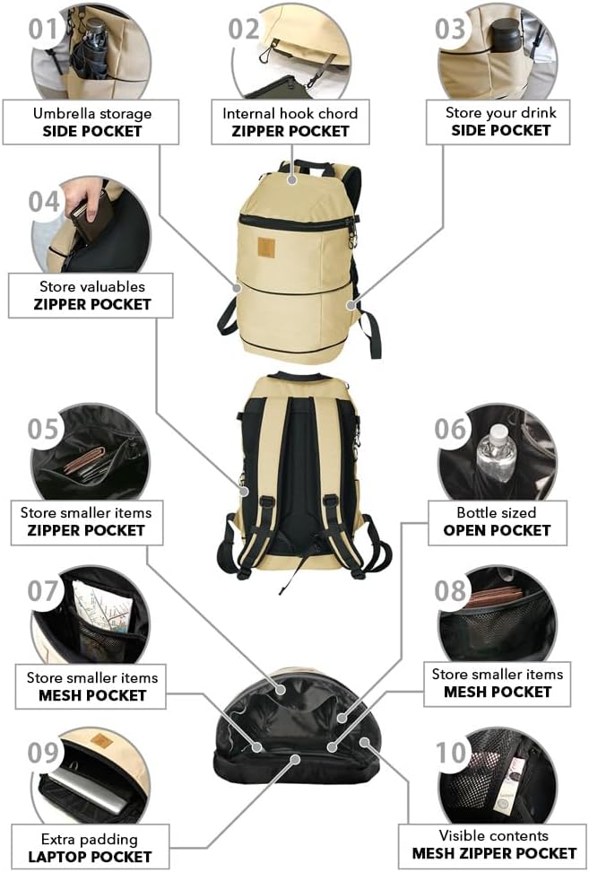 • 𝗩𝗲𝗿𝘀𝗮𝘁𝗶𝗹𝗲: إجمالي عشرة جيوب، بما في ذلك جيب مبطن للكمبيوتر اللوحي.