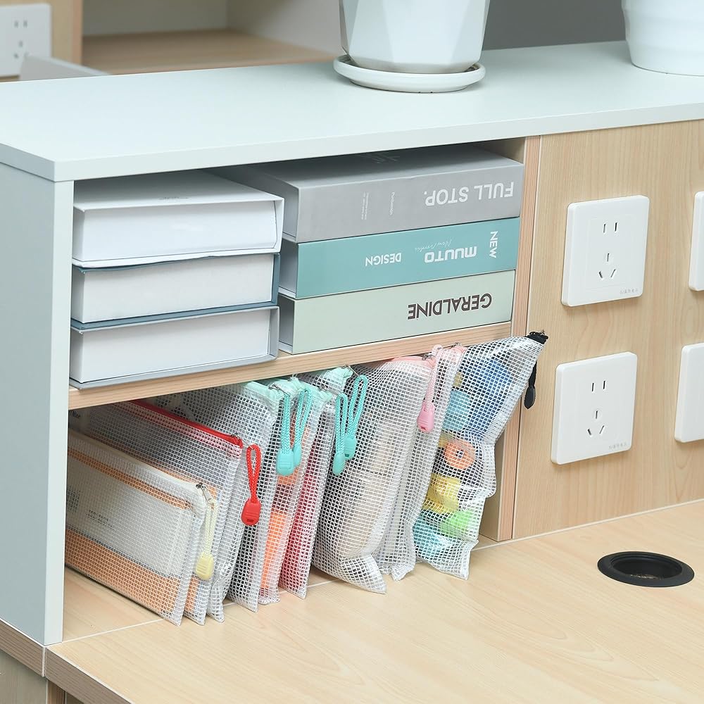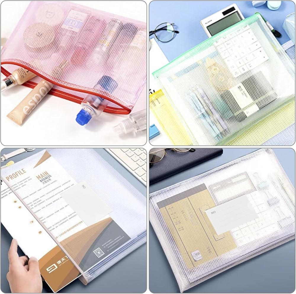 【أحجام متعددة】يمكن استخدام أحجام متعددة من جيوب التخزين الشبكية ذات السحاب لتخزين الأقلام والفواتير والأشرطة واللوازم المدرسية. مصممة لمساعدتك على تنظيم المستندات الخاصة بك. يسمح لك التصميم الشبكي الشفاف برؤية المحتويات في لمحة.