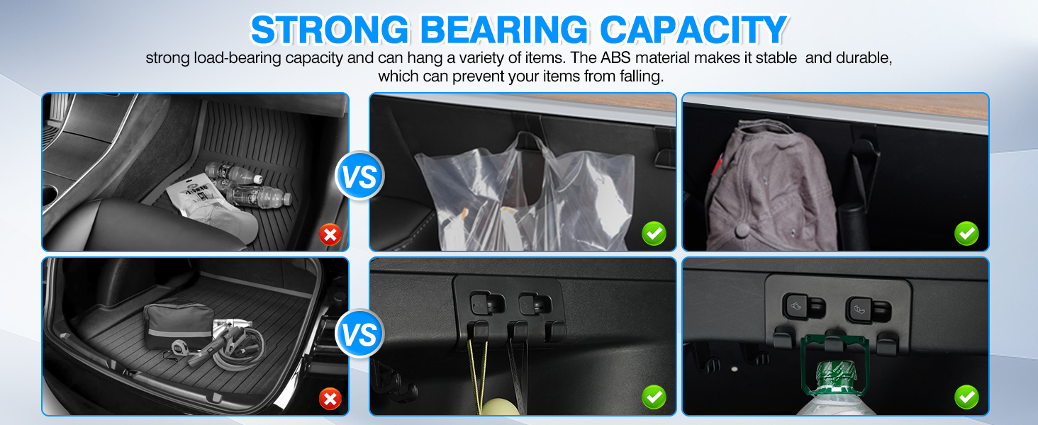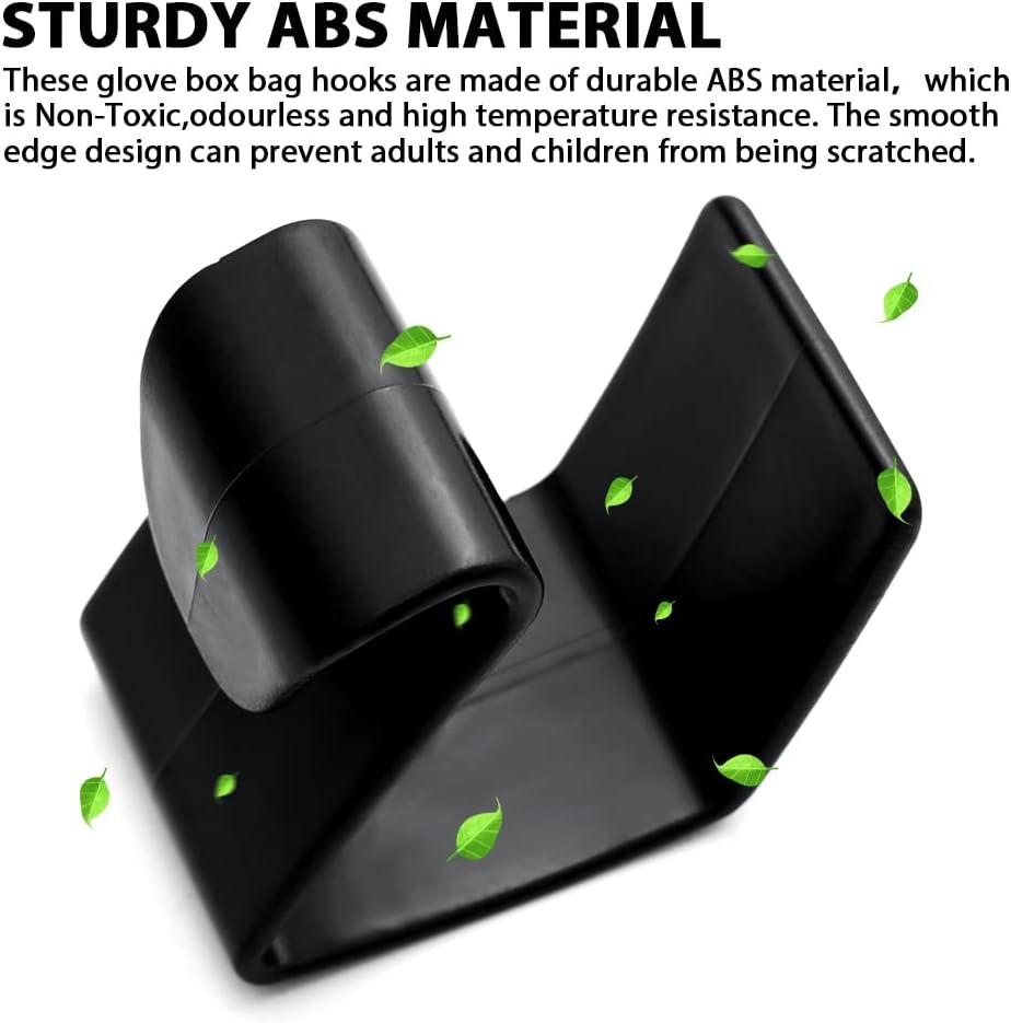 【مادة ABS متينة】: خطافات حقيبة صندوق القفازات وخطاف صندوق السيارة الخلفي مصنوعة من مادة ABS المتينة، وهي غير سامة وعديمة الرائحة ومقاومة لدرجات الحرارة العالية. تصميم الحافة الناعمة يمكن أن يمنع خدش البالغين والأطفال، مما يجعلها تبدو وكأنها جزء من الشركة المصنعة الأصلية.